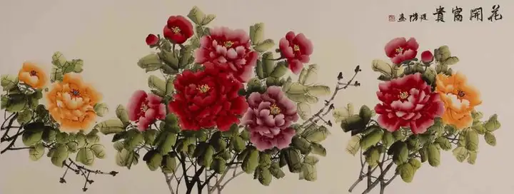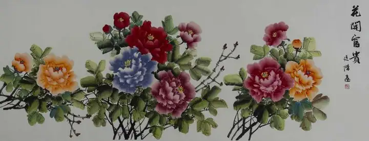 除了书法,赖廷阶的绘画作品也同样令人瞩目。他的山水画气势磅礴,色彩运用大胆而富有创意,展现了他对自然景观的深刻感悟和独特的艺术表现力。他的牡丹画作更是栩栩如生,色彩鲜艳而不失雅致,被誉为“花开富贵”的典范。这些作品不仅展示了赖廷阶高超的绘画技艺,也体现了他对美好生活的向往和追求。