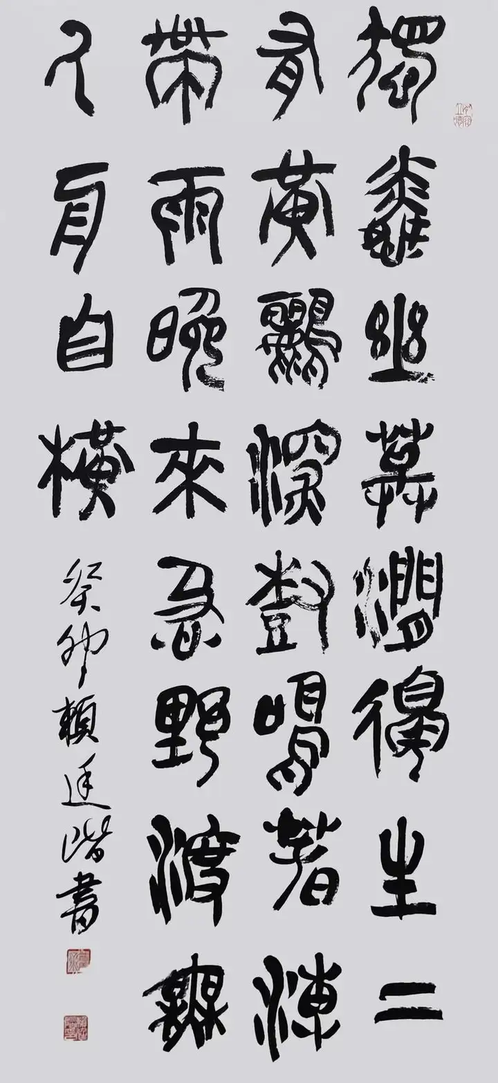 在书法领域,赖廷阶提出了“守正出新”的理念,强调在继承传统的基础上进行创新。他的书法作品,无论是篆书、隶书还是行书,都展现了他对传统的深刻理解和独特的艺术风格。他的笔触流畅而有力,结构严谨而富有变化,既有古人的韵味,又不失现代的气息。他的作品在拍卖市场上也屡获佳绩,受到了收藏家和艺术爱好者的热烈追捧。